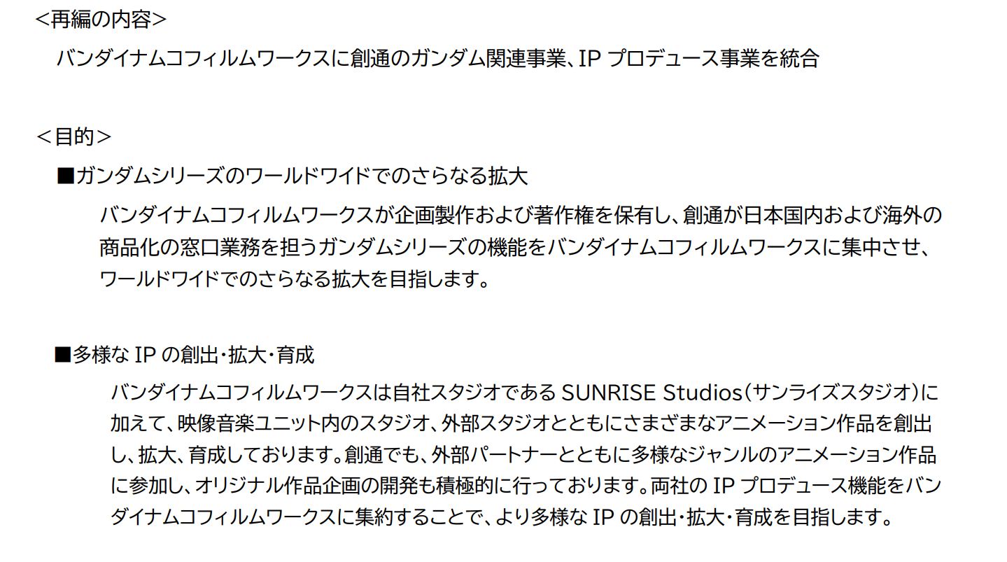 バンダイナムコグループ映像音楽ユニット内の再編について ガンダムシリーズのワールドワイドでの拡大と多様な IP の創出・拡大・育成にむけて